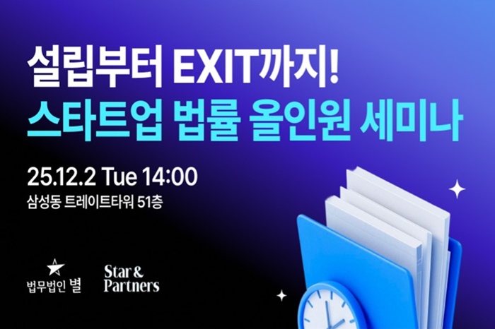 ½ºÅ¸Æ®¾÷ Àü¹® ·ÎÆß ¹ý¹«¹ýÀÎ º°ÀÌ ¿À´Â 12¿ù 2ÀÏ, â¾÷ÀÚ ¹× ½ºÅ¸Æ®¾÷ °æ¿µÁøÀ» ´ë»óÀ¸·Î ¡®½ºÅ¸Æ®¾÷ ¹ý·ü ¿ÃÀοø ¼¼¹Ì³ª¡¯¸¦ °³ÃÖÇÑ´Ù.
