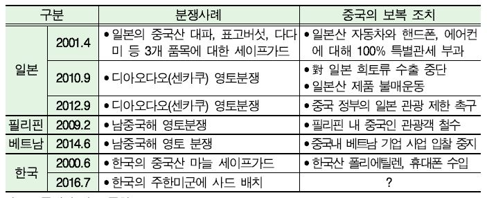 Áß±¹Àº Áö³ 2001³â ÀϺ»ÀÌ Áß±¹»ê ´ëÆÄ¡¤Ç¥°í¹ö¼¸ µî ǰ¸ñ¿¡ ´ëÇÑ ¼¼ÀÌÇÁ°¡µå Á¶Ä¡¸¦ ÃëÇѵ¥ ´ëÇÑ ¹«¿ªº¸º¹À¸·Î ÀϺ»»ê ÀÚµ¿Â÷¡¤ÇÚµåÆù µî¿¡ ´ëÇÑ Æ¯º°°ü¼¼¸¦ ºÎ°úÇÑ ¹Ù ÀÖ´Ù. ¶Ç ÀϺ»¡¤º£Æ®³²¡¤Çʸ®ÇɰúÀÇ ¿µÅäºÐÀï ¶§¿¡µµ ƯÁ¤ ǰ¸ñ¿¡ ´ëÇÑ ¼öÃâ Áß´Ü »Ó ¾Æ´Ï¶ó »ó´ë±¹ °ü±¤À» Á¦ÇÑÇÏ´Â Á¶Ä¡µµ ³»·È´Ù. ¿ì¸®³ª¶óµµ 2000³â Áß±¹»ê ¸¶´Ã¿¡ ´ëÇÑ ¼¼ÀÌÇÁ°¡µå Á¶Ä¡·Î Áß±¹ÀÇ ¹«¿ªº¸º¹ Á¶Ä¡¸¦ °æÇèÇÑ ¹Ù ÀÖ´Ù.