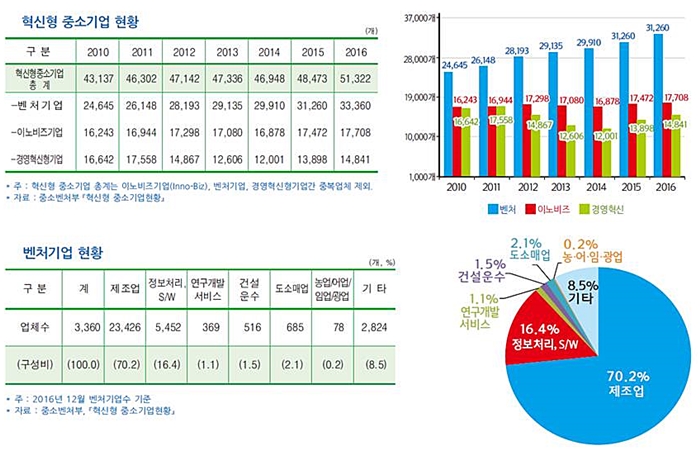 º¥Ã³±â¾÷, À̳ëºñÁî±â¾÷ µî Çõ½ÅÇü Áß¼Ò±â¾÷ÀÌ Áõ°¡Çß´Ù. Áß¼Ò±â¾÷Áß¾Óȸ ¡®2017 Áß¼Ò±â¾÷ À§»óÁöÇ¥¡¯¿¡ µû¸£¸é, Çõ½ÅÇü Áß¼Ò±â¾÷Àº 2010³â 4¸¸3137°³¿¡¼ 2016³â 5¸¸1322°³·Î Å©°Ô ´Ã¾ú´Ù.