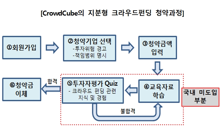 ÇÑÆí Å©¶ó¿ìµåÆÝµù ÅõÀÚÀ§ÇèÀ» È®½ÇÈ÷ ÀÎÁöÇϰí ÅõÀÚÇÒ ¼ö ÀÖµµ·Ï ¡®ÅõÀÚ ÀûÇÕ¼ºÅ×½ºÆ®¡¯¸¦ Åë°úÇÑ ÅõÀÚÀÚ¸¸ û¾àÀ» ÇÒ ¼ö ÀÖµµ·Ï ÅõÀÚÀÚ º¸È£ÀåÄ¡µµ ¸¶·ÃÇß´Ù. ÅõÀÚ ÀûÇÕ¼ºÅ×½ºÆ®´Â Å©¶ó¿ìµåÆÝµù ÅõÀÚ¿¡ µû¸¥ À§ÇèÀ» ÀÌÇØÇß´ÂÁö µîÀ» ¿Â¶óÀÎÀ¸·Î ÇÑ´Ù. ¿µ±¹ÀÇ °æ¿ì ÀÌ¿Í À¯»çÇÑ CrowdCubeÀÇ ÅõÀÚÀ§Çè Å×½ºÆ®¸¦ ¿î¿µÇϰí ÀÖ´Ù.