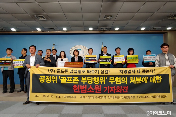 Á¤ÀÇ´ç ÃßÇý¼± ÀÇ¿ø°ú Àü±¹°ñÇÁÁ¸»ç¾÷ÀÚÇùµ¿Á¶ÇÕ(Àü°ñÇù)¡¤Çѱ¹Áß¼Ò»óÀÎÀÚ¿µ¾÷ÀÚÃÑ¿¬ÇÕȸ(ÇÑ»óÃÑ·Ã)´Â 30ÀÏ ±¹È¸ Á¤·Ð°ü¿¡¼ ±âÀÚȸ°ßÀ» ¿°í, °ñÇÁÁ¸ÀÇ ºÒ°øÁ¤ÇàÀ§¿¡ ´ëÇÑ °øÁ¤°Å·¡À§¿øÈ¸ÀÇ ¹«ÇøÀÇ Ã³ºÐÀ» ºñÆÇÇϰí, °øÁ¤À§ óºÐ¿¡ ´ëÇØ Çå¹ýÀçÆÇ¼Ò¿¡ Çå¹ý¼Ò¿ø½ÉÆÇÀ» û±¸ÇÑ´Ù°í ¹àÇû´Ù.