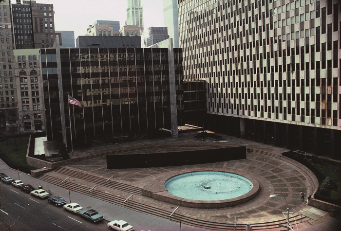 °øÃ»È¸±îÁö ¿ Á¤µµ·Î À̽´°¡ µÇ¾ú´ø °ø°ø¹Ì¼ú ÀÛǰÀº ¹Ù·Î ¹Ì ¿¬¹æÁ¶´ÞûÀÌ ÀÇ·ÚÇØ 1981³â 7¿ù¿¡ ¿¬¹æÃ»»ç ±¤Àå¿¡ ¼¼¿öÁø ¸®Ã³µå ¼¼¶ó(Richard Serra, 1938~)ÀÇ ¡®±â¿ï¾îÁø È£(Tilted Arc)¡¯´Ù. ÀÌ ÀÛǰÀº ³ôÀÌ 3.65m¿¡ ±æÀ̰¡ ¹«·Á 36.5m³ª µÇ´Â ¾à°£ ÈÖ¾îÁø Àû°¥»öÀÇ ³ì½¼ °Ã¶ÆÇÀÌ´Ù. ¹«°Ôµµ ¾î¸¶¾î¸¶Çؼ 73tÀ̳ª µÆ´Ù.