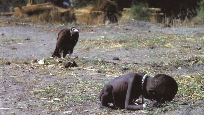 ÀÌ »çÁøÀº ¾ÆÇÁ¸®Ä« ¼ö´ÜÀÇ ÂüȤÇÑ »óȲÀ» ±ØÀûÀ¸·Î ÂïÀº »çÁøÀ¸·Î, ¿À·£ ±¾ÁÖ¸²À¸·Î »À¸¸ ¾Ó»óÇÏ°Ô ³²¾Æ Èû¾ø¾î ¹«¸ ²Ý°í ¾þµå·Á ÀÖ´Â ¾î¸°¾ÆÀÌ¿Í ¸¶Ä¡ ±× ¾î¸°¾ÆÀ̸¦ ¸ÔÀÕ°¨À¸·Î »ïÀ¸·Á´Â µí µÚ Æí¿¡¼ ¾ÆÀ̸¦ ³ë·Áº¸´Â µ¶¼ö¸®¸¦ ÇÔ²² ÂïÀº »çÁøÀÌ´Ù. 1993³â 3¿ù23ÀÏ ´º¿åŸÀÓ½º 1¸é¿¡ ½Ç¸° ÀÌ »çÁøÀº Àü ¼¼°èÀûÀ¸·Î ¾öû³ ¹ÝÇâÀ» ºÒ·¯ÀÏÀ¸Ä×°í, ÀÛ°¡¿¡°Ô´Â ´ÙÀ½ ÇØ ǽ¸®Ã³»ó ¼ö»óÀ̶ó´Â ¿µ¿¹¸¦ ¾È°ÜÁÖ¾ú´Ù.