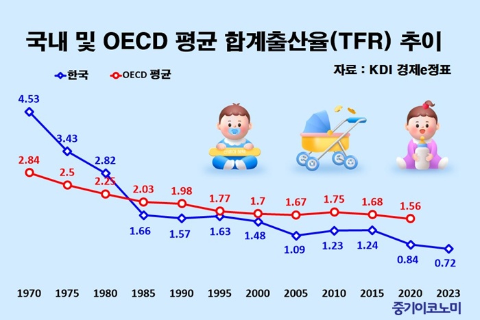 Çѱ¹Àº 2000³â´ë ÃʹݺÎÅÍ º»°ÝÀûÀÎ ÀúÃâ»ê ±¹¸é¿¡ Á¢¾îµé¾ú´Ù. 2002³â ÇÕ°èÃâ»êÀ²ÀÌ 1.3¸í ÀÌÇÏ·Î ¶³¾îÁö¸ç ¡®ÃÊÀúÃâ»ê ±¹°¡¡¯·Î ºÐ·ùµÆ°í, Ãâ»ý¾Æ ¼ö´Â 2001³â 60¸¸¸í ¼öÁØ¿¡¼ 2002³â 40¸¸¸í´ë·Î ±Þ°¨Çß´Ù. ÀÌÈÄ¿¡µµ Ç϶ô¼¼´Â °è¼ÓµÅ 2018³â¿¡´Â Ãâ»êÀ²ÀÌ Ã³À½À¸·Î 1.0¸í ¾Æ·¡·Î ¶³¾îÁ³°í, ÃÖ±Ù¿¡´Â 0.78¸í±îÁö ³·¾ÆÁ³´Ù. ÀÌ´Â °æÁ¦Çù·Â°³¹ß±â±¸(OECD) ȸ¿ø±¹ Áß °¡Àå ³·Àº ¼öÁØÀÌ´Ù.