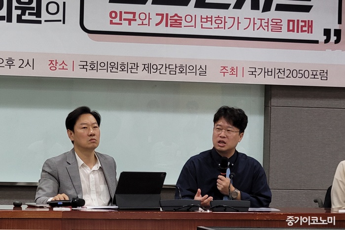 ¹ÚÁ¤È£ ¸íÁö´ëÇб³ ƯÀÓ±³¼ö´Â ±¹È¸ ±¹°¡ºñÀü2050Æ÷·³ÀÌ 4ÀÏ °³ÃÖÇÑ ¡®Àα¸¿Í ±â¼ú º¯È°¡ °¡Á®¿Ã ¹Ì·¡¡¯ ÅäÅ©ÄܼƮ¿¡¼ ¡°Àα¸ °¨¼Ò´Â ´Ü¼øÇÑ À§±â°¡ ¾Æ´Ï¶ó »çȸ±¸Á¶ Àü¹ÝÀÇ ÆÐ·¯´ÙÀÓ ÀüȯÀ» ÀǹÌÇÑ´Ù¡±¸ç À̰°ÀÌ ÁÖÀåÇß´Ù.