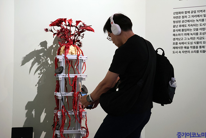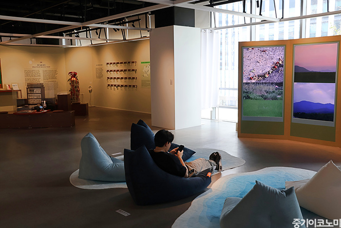 À̹ø Àü½Ã´Â ½Ã°¢¿¹¼ú°¡ ±×·ìÀÎ ¡®»ç¿îµå¿ïÇÁ¡¯ÀÇ À½¾ÇÀ» °ø°£ÀûÀ¸·Î Ȱ¿ëÇß´Ù. ÇØ°¡ ¶°¼ Áú ¶§±îÁöÀÇ ¸ð½ÀÀ» û°¢ÀûÀ¸·Î Ç®¾î³»°í, ³ìÁö´ë°¡ ºÎÁ·ÇÑ G¹ë¸®¿¡¼ ÀÏÇÏ´Â Á÷ÀåÀÎÀÇ ³»Àû º¯È¸¦ Ç¥ÇöÇß´Ù. Àϱ⠾µ ¶§ »ç°¢´ë´Â ¿¬ÇÊ ¼Ò¸®, »çÁøÀ» ÂïÀ» ¶§ ÂûĬ´ë´Â ¼Ò¸®, °¡Á·ÀÌ ¿ô´Â ¼Ò¸® µî ´Ù¾çÇÑ Èú¸µÀÇ ¼ø°£µµ ¼Ò¸®·Î µéÀ» ¼ö ÀÖ´Ù. ©Áß±âÀÌÄÚ³ë¹Ì¿ÀÀ±Á¤ Çп¹¿¬±¸»ç¿Í À̼ö¿¬ ¿¬±¸¿øÀº ¡°Àü½Ã¸¦ ÅëÇØ ±Ù·Î-ÈÞ½Ä-¿©°¡ÀÇ ÀÎ½Ä º¯È¿Í »ó°ü°ü°è¸¦ ¼±º¸¿© ¼±¼øÈ¯Àû ±Ù·Îȯ°æ Á¶¼ºÀ» À§ÇÑ ÀνÄÀ» ¸¶·ÃÇϰíÀÚ Çß´Ù¡±¸ç, ¡°2020³âµµºÎÅÍ 3°³³â Åë°è¿¡ µû¸£¸é, 10¸í Áß 4¸íÀº ÈÞ°¡ Áß¿¡ ¾÷¹« °ü·Ã ¿¬¶ôÀ» ¹Þ´Â´Ù. ÀÌ ¸»Àº ¾ÆÁ÷µµ ¿ÂÀüÈ÷ È޽Ŀ¡ ÁýÁßÇϱ⠾î·Á¿î »óȲÀ̶ó´Â °ÍÀ» ¹æÁõÇÑ´Ù. ÀÌ·± °Íµµ Â÷Â÷ ¾ÕÀ¸·Î °³¼±ÇØ¾ß ÇÒ ÁöÁ¡À̶ó´Â »ý°¢ÀÌ µé¾ú´Ù¡±°í ¹àÇû´Ù.±×·¯¸é¼ ¡°°ú°Å¸¦ ÅëÇØ ÇöÀ縦 µ¹¾Æº¸°í, À̸¦ ÅëÇØ ¾ÕÀ¸·Î ¿ì¸®°¡ ÇØ°áÇØ¾ß ÇÒ ¹æÇâ¿¡ ´ëÇÑ Áú¹®°Å¸®¸¦ ´øÁ®ÁÖ°í ½Í¾ú´Ù¡±°í µ¡ºÙ¿´´Ù.À̾î À̹ø Àü½Ã¸¦ ÅëÇØ ¹Ù»Û Àϻ󿡼 ¡®½°¡¯ÀÇ Áñ°Å¿òÀ» ´©¸®±æ ¹Ù¶ó´Â ¸¶À½µµ ÀüÇß´Ù. Àü½Ã´Â ¿À´Â 10¿ù 18ÀϱîÁö G¹ë¸®»ê¾÷¹Ú¹°°ü ±âȹÀü½Ã½Ç¿¡¼ ¿¸°´Ù.±×µéÀº ¡°Àü½ÃÀå °¡¿îµ¥¿¡ ½Ã°¢¿¹¼ú°¡ Â÷Áö·® ÀÛ°¡ÀÇ ¡®³»¼¼¡¯¶ó´Â ÀÛǰÀ» ¼³Ä¡Çß´Ù. ÀÛ°¡°¡ Á÷Á¢ Àü¶ó³²µµ¿¡ À§Ä¡ÇÑ ³»¼¼ ¸¶À»¿¡ 3°³¿ù°£ ¸Ó¹°¸é¼ ¿©¸§ÀÇ ¸ð½ÀÀ» ÃÔ¿µÇÑ °ÍÀ» 30ºÐ ±æÀÌ·Î ÆíÁýÇÑ °Í¡±À̶ó¸ç, ¡°ºñ·Ï À̰÷ÀÌ Áö½Ä»ê¾÷¼¾ÅÍ·Î µÑ·¯½ÎÀÎ °÷ÀÌÁö¸¸, À̰÷¿¡ ¾É¾Æ ÀÛǰÀ» °¨»óÇÏ¸é¼ Â÷ºÐÇÑ °¨Á¤À» ´À³¢°í °¡¸é ÁÁ°Ú´Ù¡±°í Èñ¸ÁÇß´Ù. Áß±âÀÌÄÚ³ë¹Ì ±è¹ü±Ô ±âÀÚ<ÀúÀÛ±ÇÀÚ ¨Ï Áß±âÀÌÄÚ³ë¹Ì. ¹«´ÜÀüÀç ¹× Àç¹èÆ÷ ±ÝÁö>