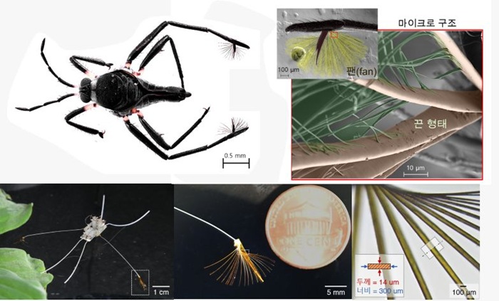 ±¹³» ¿¬±¸ÁøÀÌ ¼ö¸é À§¸¦ ÀÚÀ¯ÀÚÀç·Î ¿òÁ÷ÀÌ´Â °ïÃæÀ» ¸ð»çÇÑ ÃʼÒÇü ·Îº¿À» ¼¼°è ÃÖÃÊ·Î °³¹ßÇß´Ù.°úÇбâ¼úÁ¤º¸Åë½ÅºÎ´Â ¾ÆÁÖ´ëÇб³ °íÁ¦¼º ±³¼ö ¿¬±¸ÆÀ(Á¦1ÀúÀÚ ±èµ¿Áø ¹Ú»ç)ÀÌ °ïÃæ ¶ó°íº§¸®¾Æ(ºÎä´Ù¸® ¼Ò±ÝÀïÀÌ)¿¡¼ ÈùÆ®¸¦ ¾ò¾î °ïÃæ ÆÒÀÇ ¹Ì¼¼±¸Á¶¿Í ¼ö»ý ¿îµ¿´É·ÂÀÇ ¿¬°ü¼ºÀ» ±Ô¸íÇϰí, À̸¦ Åä´ë·Î ÀÚ±â Àü°³Çü ÃʼÒÇü ·Îº¿ ÃßÁøÀåÄ¡¸¦ °³¹ßÇß´Ù°í 22ÀÏ ¹àÇû´Ù.¼Ò±ÝÀïÀ̰úÀÇ ÇϳªÀÎ ¶ó°íº§¸®¾Æ´Â ´Ù¸® ³¡¿¡ ÀÖ´Â ºÎä²Ã ±¸Á¶¸¦ ¼ø°£ÀûÀ¸·Î ÆîÃÄ ºü¸¥ ¹°»ì¿¡¼µµ ¹ÎøÇÏ°Ô ¿òÁ÷ÀÏ ¼ö ÀÖ´Â ÃßÁø·ÂÀ» »ý¼ºÇÑ´Ù. ÇÏÁö¸¸, ÀÌ·± ±¸Á¶°¡ ¾î¶² ¿ø¸®·Î Ãʴܽ𣿡 ÀÛµ¿ÇÏ´ÂÁö´Â ±×µ¿¾È ¹àÇôÁöÁö ¾Ê¾Ò´Ù. ÀÌ·± ÀÚ¿¬ Çö»óÀ» ±Ô¸íÇϱâ À§Çؼ´Â µ¿ÀÏÇÑ ±¸Á¶¸¦ °¡Áø ·Îº¿À» ½ÇÁ¦·Î Á¦ÀÛÇØ °°Àº ¹æ½ÄÀ¸·Î µ¿ÀÛÇÏ´ÂÁö ÀÔÁõÇÏ´Â °úÁ¤ÀÌ ÇÊ¿äÇÏ´Ù.°íÁ¦¼º ±³¼ö ¿¬±¸ÆÀÀº »ý¹°ÇÐÀ» ¿¬±¸ÇÏ´Â ¹Ì±¹ ͏®Æ÷´Ï¾Æ ´ëÇб³ ¹öŬ¸® Ä·ÆÛ½º(UC ¹öŬ¸®, University of California, Berkeley), Á¶Áö¾Æ °ø°ú´ëÇб³(Georgia tech) ¿¬±¸ÆÀ°ú Çù·ÂÇØ º»°ÝÀûÀ¸·Î ¿¬±¸¸¦ ½ÃÀÛÇß´Ù.±× °á°ú, ¼ö¸é À§¿¡¼ ¶ó°íº§¸®¾Æ¿Í µ¿ÀÏÇÑ ¹æ½ÄÀ¸·Î µ¿ÀÛÇÏ´Â ÃʼÒÇü ·Îº¿À» °³¹ßÇÏ´Â µ¥ ¼º°øÇß´Ù. 21°³ÀÇ ²ö ÇüÅÂÀÇ Àΰø ÅзΠºÎä²Ã ±¸Á¶¸¦ Á¦ÀÛÇØ °ïÃæ Å©±âÀÇ ·Îº¿¿¡ Àû¿ëÇßÀ¸¸ç, ÀÌ·± ±¸Á¶°¡ ¹°¼Ó¿¡¼ °ÇÑ ÃßÁø·ÂÀº ¹°·Ð ¹ÎøÇÑ ¹æÇâ Àüȯ±îÁö °¡´ÉÇÏ°Ô ÇÑ´Ù´Â »ç½ÇÀ» È®ÀÎÇß´Ù.À̸¦ ÅëÇØ ¿¬±¸ÆÀÀº ¶ó°íº§¸®¾ÆÀÇ ´Ù¸® ³¡ ºÎä²Ã ±¸Á¶°¡ ±ÙÀ°ÀÇ ÈûÀ¸·Î ÆîÃÄÁö´Â °ÍÀÌ ¾Æ´Ï¶ó, ¼öÁß È¯°æ°úÀÇ »óÈ£ÀÛ¿ë(ź¼º¡¤¸ð¼¼°ü Çö»ó)À¸·Î ÀÎÇØ ´Ù¸®°¡ ¹°¼Ó¿¡ µé¾î°¡¸é 0.01ÃÊ À̳»¿¡ ½º½º·Î ÆîÃÄÁö°í, ¹° ¹Û¿¡¼´Â Áï½Ã Á¢È÷´Â Ãʰí¼Ó ÀÚ°¡ º¯Çü±¸Á¶¸¦ °®´Â´Ù´Â °ÍÀ» ¹àÇô³½ °ÍÀÌ´Ù.ÀÌ·± ÀÚ¿¬ÀÇ ¿ø¸®¸¦ Åä´ë·Î, ¿¬±¸ÆÀÀÌ ±¸ÇöÇÑ ·Îº¿Àº Àΰø ÆÒ »Ó¸¸ ¾Æ´Ï¶ó ´Ù¸®¸¦ ¿òÁ÷ÀÏ ¼ö ÀÖ´Â ±ÙÀ° ¿ªÇÒÀ» ÇÒ ¼ö ÀÖ´Â Çü»ó±â¾ïÇÕ±Ý ±â¹ÝÀÇ 17mgÀÇ Àΰø±ÙÀ° ±¸µ¿±â·Î ÀÚÀ¯ÀÚÀç·Î ´Ù¸®¸¦ ¿òÁ÷ÀÏ ¼ö ÀÖ´Ù.¶ÇÇÑ, ÃÑ ¹«°Ô 0.23gÀÇ ÃʼÒÇü ·Îº¿ÀÇ Àΰø ÆÒÀ» ÅëÇØ ±âÁ¸ÀÇ ¹Ý¼ö»ý ·Îº¿µéº¸´Ù ´õ ³ôÀº ±âµ¿ ¼º´ÉÀ» º¸À̸ç, ¹ÎøÇÑ Á¦µ¿°ú ¹æÇâ ÀüȯÀÌ °¡´ÉÇÔÀ» È®ÀÎÇß´Ù. Âü°í·Î, ÀÌ ·Îº¿ÀÇ È¸Àü ¼Óµµ´Â 206¡Æ/sÀ̰í, ÀüÁø ¼Óµµ´Â 1.96 body length(BL)/sÀÌ´Ù.ÀÌ´Â ÀÌÀüÀÇ ¿¬±¸¿Í´Â Â÷º°ÈµÈ °á°ú´Ù. ±×µ¿¾È ¼ö»ý ¶Ç´Â ¹Ý¼ö»ý °ïÃæÀÇ ¿îµ¿¿ø¸®¸¦ ¸ð¹æÇÑ ·Îº¿ ¿¬±¸´Â Ȱ¹ßÈ÷ ÁøÇàµÅ ¿ÔÁö¸¸, ´ëºÎºÐ ´Ü¼øÇÑ ±¸Á¶¿¡ ÀÇÁ¸ÇØ ¼Óµµ Á¶ÀýÀ̳ª º¹ÀâÇÑ ±âµ¿¿¡´Â ÇѰ谡 ÀÖ¾ú´Ù. µû¶ó¼, ¼ÒÇü ·Îº¿ ¿ª½Ã ¾ãÀº ¼Ò¼ö¼º ´Ù¸®¸¦ ÀÌ¿ëÇØ Ç¥¸éÀå·ÂÀ» ÁÙÀÌ´Â ¹æ½Ä¿¡ ±¹ÇѵŠÀÖ¾î ÃßÁø·ÂÀÌ ºÎÁ·Çϰí ȸÀü¡¤Á¦µ¿ ´É·Â ¿ª½Ã Á¦Çѵƾú´Ù.µû¶ó¼ À̹ø ¿¬±¸´Â °ïÃæ ÆÒÀÇ ¹Ì¼¼±¸Á¶¿Í ¼ö»ý ¿îµ¿´É·ÂÀÇ ¿¬°ü¼ºÀ» ¼¼°è ÃÖÃÊ·Î ±Ô¸íÇϰí, À̸¦ Åä´ë·Î ÀÚ±â Àü°³Çü ÃʼÒÇü ·Îº¿ ÃßÁøÀåÄ¡¸¦ ±¸ÇöÇß´Ù´Â µ¥ ÀÇÀǰ¡ ÀÖ´Ù.À̹ø ¿¬±¸´Â ¼ö»ý ¸¶ÀÌÅ©·Î ·Îº¿, ȯ°æ ¸ð´ÏÅ͸µ, ¼öÁú Ž»ç, Àç³ ÇöÀå ¼ö»ö µî ¼ÒÇü ¼ö»ó ·Îº¿ Ç÷§Æû µî ´Ù¾çÇÑ ºÐ¾ß¿¡ Ȱ¿ëµÉ °ÍÀ¸·Î ¿¹»óµÈ´Ù.°íÁ¦¼º ±³¼ö´Â ¡°ÀÚ¿¬°è °ïÃæÀÌ °¡Áø ±¸Á¶Àû Áö´ÉÀ» ±Ô¸íÇÑ ¼º°ú¡±¶ó¸ç, ¡°ÇâÈÄ È¯°æ Á¡°Ë, ±¸Á¶ Ȱµ¿, »ý¹° ¸ð¹æ ·Îº¿ °øÇÐ µî ¸¹Àº ºÐ¾ß¿¡¼ Ȱ¿ëµÉ °Í¡±À̶ó°í ±â´ëÇß´Ù.°ú±âÁ¤ÅëºÎ ±âÃÊ¿¬±¸»ç¾÷ÀÇ Áö¿øÀ¸·Î ¼öÇàÇÑ À̹ø ¿¬±¸ ¼º°ú´Â ¼¼°è ÃÖ°í ±ÇÀ§ÀÇ ÇмúÁöÀÎ ¡®»çÀ̾ð½º(Science)¡¯¿¡ 8¿ù22ÀÏ Ç¥Áö ³í¹®À¸·Î °ÔÀçµÆ´Ù. Áß±âÀÌÄÚ³ë¹Ì ±è¹ü±Ô ±âÀÚ