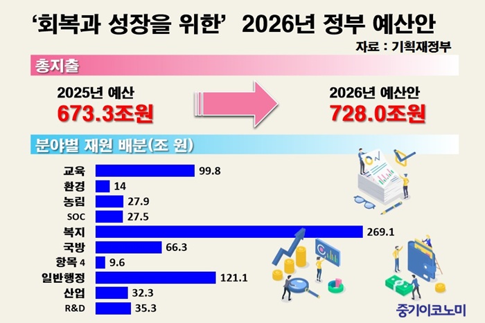 2026³âµµ ¿¹»ê¾ÈÀº ÀÌÀç¸í Á¤ºÎ°¡ Æí¼ºÇÑ Ã¹ ¿¹»êÀÌ´Ù. ±â¼úÇõ½Å°ú »çȸ¾ÈÀü¸Á °È µî ¼º°ú¸¦ âÃâÇÒ ¼ö ÀÖ´Â ºÐ¾ß¿¡ ÁýÁß ÅõÀÚÇÏ´Â ÇÑÆí, ³¶ºñ¼º¡¤°üÇàÀû ÁöÃâÀ» °ú°¨È÷ ±¸Á¶Á¶Á¤ÇØ ¼º°ú Áß½ÉÀÇ ÀçÁ¤ ¿î¿ëÀ» ÁöÇâÇÑ´Ù.