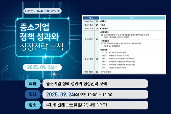 Áß¼Òº¥Ã³±â¾÷¿¬±¸¿øÀº ÀÌ´Þ 24ÀÏ ¼¿ï ¿©Àǵµ ·ç³ª¹Ì¿¤·¹ ÆÄÅ©ºäȦ¿¡¼ ¡®Áß¼Ò±â¾÷ Á¤Ã¥ ¼º°ú¿Í ¼ºÀåÀü·« ¸ð»ö¡¯À» ÁÖÁ¦·Î Á¦4Â÷ KOSI ½ÉÆ÷Áö¾öÀ» °³ÃÖÇÑ´Ù°í 18ÀÏ ¹àÇû´Ù.