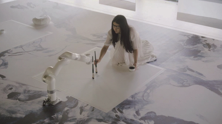 ¼öÁ¨ ûÀÇ ´ëÇ¥ÀÛ Áß ÇϳªÀÎ ¡®Drawing Operations Unit: Generation 2(Memory)¡¯(2017)¿¡¼´Â ÀÛ°¡¿Í ·Îº¿ DOUG°¡ ³ª¶õÈ÷ ¼¼ ÇϳªÀÇ °Å´ëÇÑ Äµ¹ö½º¸¦ °øÀ¯ÇÏ¸ç µ¿½Ã¿¡ ¼±À» ±×¸°´Ù. ÀÛ°¡°¡ ¼ÕÀ» ¿òÁ÷À̸é, ·Îº¿ÀÌ Áï°¢ ¹ÝÀÀÇØ À¯»çÇÑ µ¿ÀÛÀ» ÀÌ¾î¼ ÇÑ´Ù.
