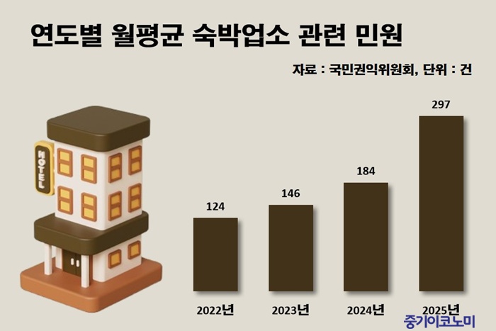 ±¹¹Î±ÇÀÍÀ§ ºÐ¼®¿¡ µû¸£¸é 2025³â ¿ùÆò±Õ ¼÷¹Ú¾÷¼Ò °ü·Ã ¹Î¿øÀº 297°ÇÀ¸·Î, 2022³â ´ëºñ 2.4¹è Áõ°¡Çß´Ù. ƯÈ÷ Ãß¼® ¿¬ÈÞ¿Í 10¿ù Ȳ±Ý¿¬ÈÞ¸¦ ¸Â¾Æ ¹Î¿ø ¹ß»ýÀÌ ´õ ´Ã¾î³¯ °ÍÀ¸·Î Àü¸ÁµÆ´Ù.