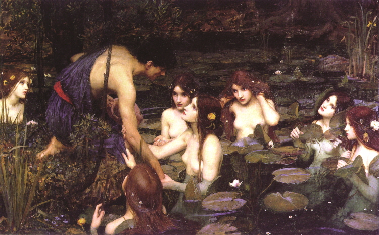ƯÈ÷ 1891³â ÀÌÈÄ ±×ÀÇ È¸È¿¡¼ ¹Ýº¹ÀûÀ¸·Î µîÀåÇÏ´Â ¡®¹°¡¯ÀÇ À̹ÌÁö´Â ÁÖ¸ñÇÒ ¸¸ÇÏ´Ù. ±×ÀÇ ¼º¾¾ ¡®Waterhouse¡¯¿Íµµ ¿¬°áµÇ´Â ÀÌ ¸ðƼÇÁ´Â ´Ü¼øÇÑ ¿ì¿¬ÀÌ ¾Æ´Ï¾ú´Ù. ¼£·ÔÀÇ ¿©ÀÎÀº ¹è¸¦ Ÿ°í °À» ¶°³»·Á°¡°í, ¿ÀÇʸ®¾Æ´Â ¹°¿¡ ºüÁ® Á×À¸¸ç, ´ÔÇÁµéÀº ¹°¼Ó¿¡ »ì°í, ³ª¸£Å°¼Ò½º´Â ¹°¿¡ ºñÄ£ ÀÚ½ÅÀÇ ¸ð½À¿¡ ¸ÅȤµÈ´Ù. ¹°Àº ¿öÅÍÇϿ콺¿¡°Ô Çö½Ç°ú ȯ»ó, »î°ú Á×À½, Àǽİú ¹«ÀÇ½Ä »çÀÌÀÇ °æ°è¸¦ »ó¡ÇÏ´Â Áß¿äÇÑ ¸Å°³Ã¼¿´´Ù.