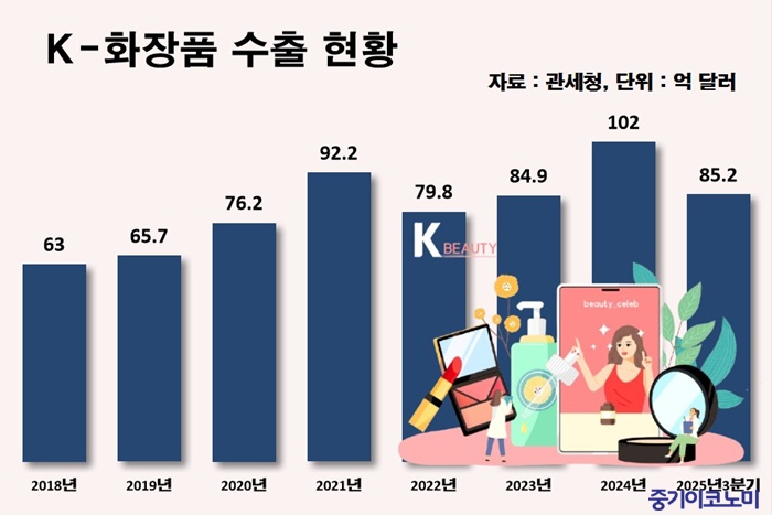 17ÀÏ °ü¼¼Ã»¿¡ µû¸£¸é, ÄÉÀÌ(K)-ºäƼ »ê¾÷Àº ÃÖ±Ù 9ºÐ±â ¿¬¼Ó ¼ºÀå¼¼¸¦ À̾¸ç 2025³â 3ºÐ±â¿¡µµ 30¾ï ´Þ·¯(Àü³â ´ëºñ 17.6% Áõ°¡)ÀÇ ¼öÃâÀ» ±â·ÏÇß´Ù. ƯÈ÷ ÇÑ·ù ¿Ç³ÀÌ ¿µÈ¿Í À½¾ÇÀ» ÅëÇØ ´Ù½Ã È®»êµÇ¸é¼, Àü ¼¼°è¿¡¼ Çѱ¹ ÈÀåǰ¿¡ ´ëÇÑ ¼ö¿ä°¡ ²ÙÁØÈ÷ Áõ°¡ÇÑ °ÍÀÌ ÁÖ¿ä ¿äÀÎÀ¸·Î ²ÅÈù´Ù.
