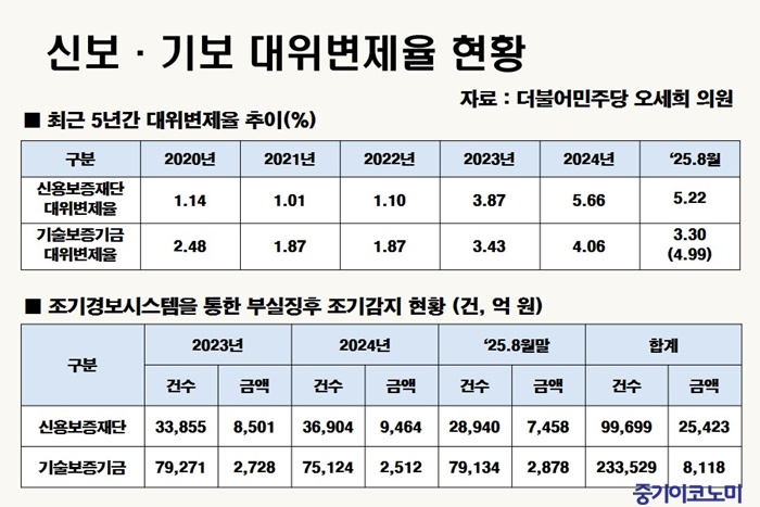 ÃÖ±Ù 3³â°£ µÎ ±â°üÀÇ EWS¸¦ ÅëÇØ ¾à 33¸¸ °Ç, ±Ý¾×À¸·Î´Â 3Á¶ 3000¾ï ¿ø ±Ô¸ðÀÇ ºÎ½Ç ¡Èİ¡ °¨ÁöµÆÀ¸³ª, ´ëÀ§º¯Á¦À²Àº ¿ÀÈ÷·Á »ó½ÂÇØ 2024³â ±âÁØ ½Å¿ëº¸ÁõÀç´Ü 5.66%, ±â¼úº¸Áõ±â±Ý 4.06%·Î ¿ª´ë ÃÖ°íÄ¡¸¦ ±â·ÏÇß´Ù.