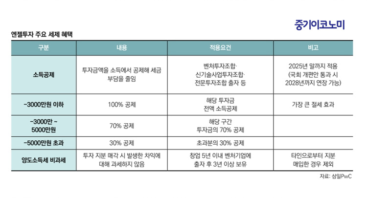 ÀÌ´Â Ãʱ⠱â¾÷¿¡ ÀÚ±ÝÀ» ÅõÀÔÇÏ´Â À§ÇèÀ» °¨¼öÇÏ´Â ´ë½Å ÅõÀÚÀÚ¿¡°Ô ½ÇÁúÀûÀÎ ÇýÅÃÀ» µ¹·ÁÁÖ·Á´Â ÀåÄ¡´Ù. ´Ù¸¸ ÀÌ Á¦µµ´Â ÇöÀç 2025³â ¸»±îÁö Àû¿ëµÇ¸ç, ±¹È¸¿¡ °è·ù ÁßÀÎ ¼¼Á¦ °³Æí¾ÈÀÌ Åë°úµÇ¸é 2028³â±îÁö ¿¬ÀåµÈ´Ù.