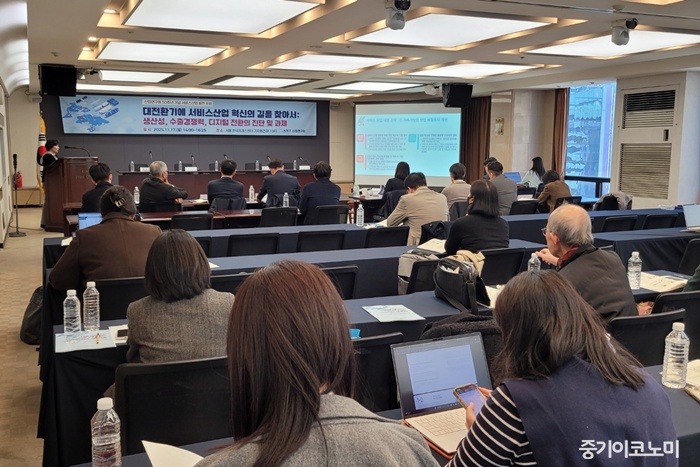Á¤ Â÷ÀåÀº ¡°ÆÒµ¥¹Í ÀÌÈÄ ±Û·Î¹ú ¼ºñ½º¾÷Àº µðÁöÅÐ ÀüȯÀ» ±â¹ÝÀ¸·Î »ý»ê¼ºÀ» ȸº¹ÇßÁö¸¸, Çѱ¹ ¼ºñ½º¾÷Àº Àå±â Ãß¼¼Á¶Â÷ ȸº¹ÇÏÁö ¸øÇϰí ÀÖ´Ù¡±¸ç Á¤Ã¥ ¹æÇâ ÀüȯÀÇ Çʿ伺À» °Á¶Çß´Ù. ±×·¯¸é¼ µðÁöÅÐ ÀüȯÀÌ °¡¼ÓȵǸç Á¦Á¶¿Í ¼ºñ½ºÀÇ °æ°è°¡ Èñ¹ÌÇØÁö°í ÀÖÁö¸¸, Çѱ¹ ¼ºñ½º¾÷Àº ±â¼ú È®»ê°ú »ê¾÷±¸Á¶ º¯È¿¡ ÃæºÐÈ÷ ´ëÀÀÇÏÁö ¸øÇϰí ÀÖ´Ù°í ÁöÀûÇß´Ù.