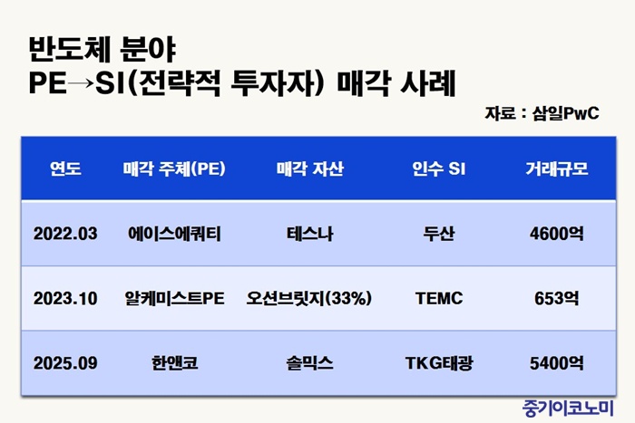 »ç¸ðÆÝµå°¡ º¸À¯ÇÑ ¹ÝµµÃ¼ ÀÚ»êÀ» Àü·«Àû ÅõÀÚÀÚ(SI)°¡ ÀμöÇÏ´Â ¡®PE¡æSI ¿¢½ÃÆ®¡¯ È帧µµ ¶Ñ·ÇÇÏ°Ô Áõ°¡Çϰí ÀÖ´Ù. ÀÌ´Â ¹ÝµµÃ¼ ±â¾÷ÀÇ Àü·«Àû °¡Ä¡¿Í ¼ºÀ强ÀÌ ´Ù½Ã Á¶¸íµÇ°í ÀÖÀ½À» ÀǹÌÇÑ´Ù.
