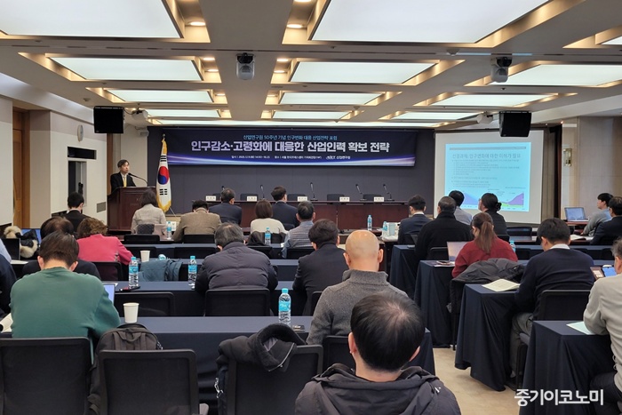 Àα¸ °¨¼Ò¿Í °í·ÉȰ¡ Çѱ¹ °æÁ¦ÀÇ ±¸Á¶Àû À§Çè¿äÀÎÀ¸·Î Áö¸ñµÇ°í ÀÖ´Â °¡¿îµ¥ ¡®Àα¸ º¯È¡¯¿¡ ´ëÇÑ °úµµÇÑ ¿ì·Áº¸´Ù´Â »ê¾÷º° ³ëµ¿¼ö¿ä ±¸Á¶¸¦ ¸é¹ÐÈ÷ Áø´ÜÇÏ°í ¡®¼¼´ë±³Ã¼¡¯°¡ ÁýÁßÀûÀ¸·Î ÀϾ´Â ½ÃÁ¡À» Á¤Ã¥ÀûÀ¸·Î °ü¸®ÇØ¾ß ÇÑ´Ù´Â Á¦¾ðÀÌ ³ª¿Ô´Ù.