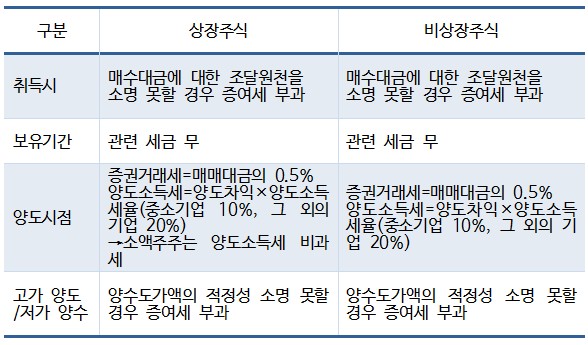 À¯°¡Áõ±Ç½ÃÀåÀ̳ª ÄÚ½º´Ú½ÃÀå¿¡ »óÀåµÇÁö ¾Æ´ÏÇÑ ºñ»óÀåÁÖ½ÄÀ» °Å·¡ÇÒ °æ¿ì¿¡´Â ´ëÁÖÁÖ ¿©ºÎ¿¡ °ü°è¾øÀÌ ¸ðµç ¸Å¸ÅÂ÷ÀÍ¿¡ ´ëÇØ Áß¼Ò±â¾÷ÀÇ °æ¿ì 10%ÀÇ ¾çµµ¼Òµæ¼¼(Áß¼Ò±â¾÷ ¿ÜÀÇ ÁÖ½Ä 20%ÀÇ ¾çµµ¼Òµæ¼¼)¿Í 0.5%ÀÇ Áõ±Ç°Å·¡¼¼°¡ °ú¼¼µÈ´Ù.